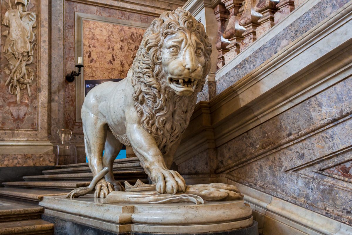 Uma imponente escada, chamada Scalone d’Onore, dá acesso aos apartamentos reais. Ela é decorada por uma escultura de Hércules além de dois leões feitos de mármore.